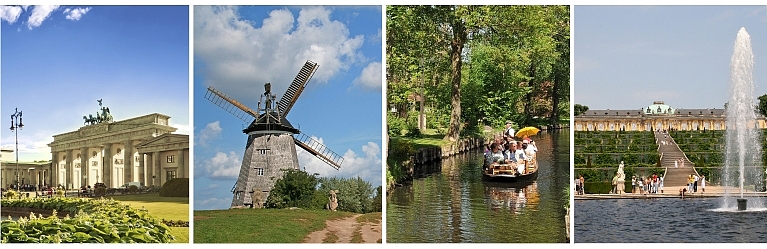 - Bildrechte: Radler = Brandenburger Tor & Windmühle & Kahn = fotolia/istockphoto, Potsdam = Marc Pillau